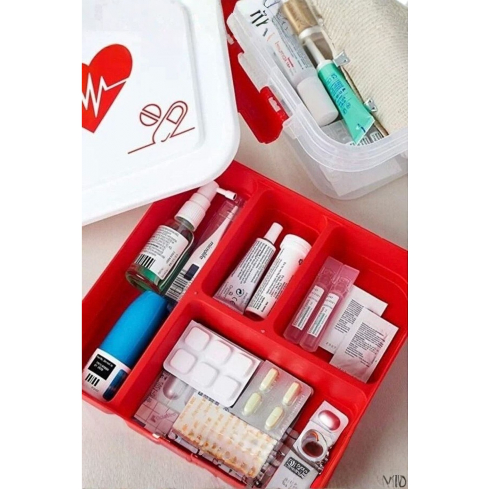 Piev 4 Bölmeli Kapaklı Ecza Dolabı Kutusu 4.5 Lt
