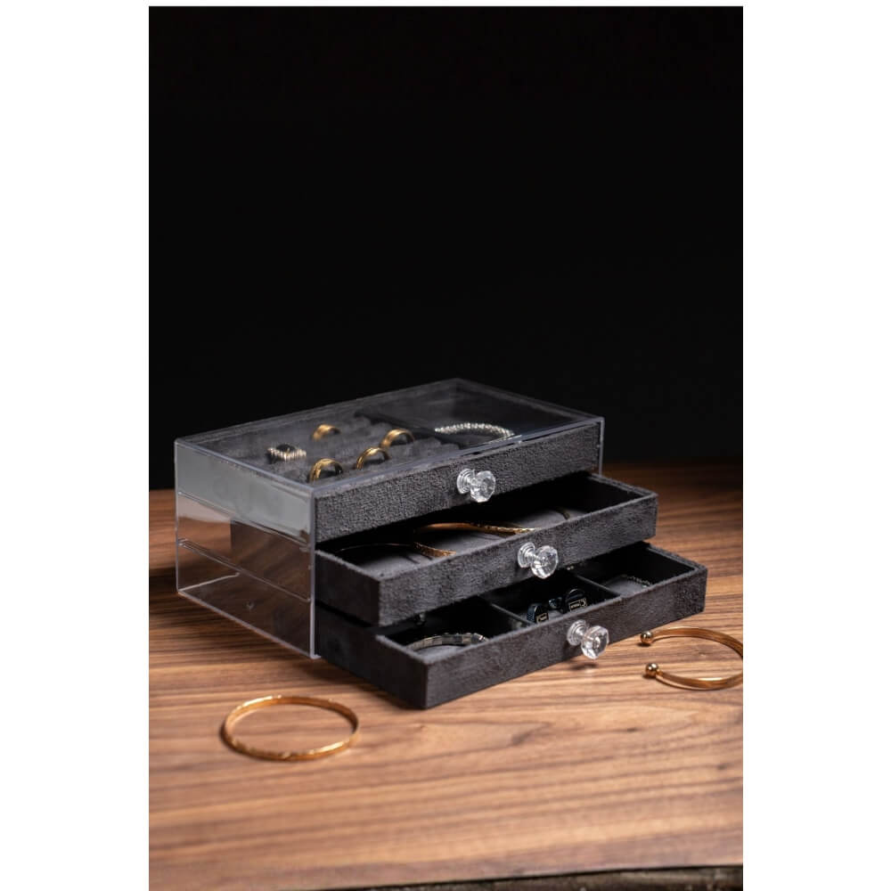 Piev House By House Kadife Kumaş Kaplı Üç Katlı Çekmeceli Takı Kozmetik Organizer Siyah