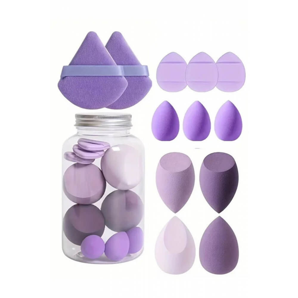 Piev Özel Kavanoz 16 Parça Makyaj Sünger Seti Mor