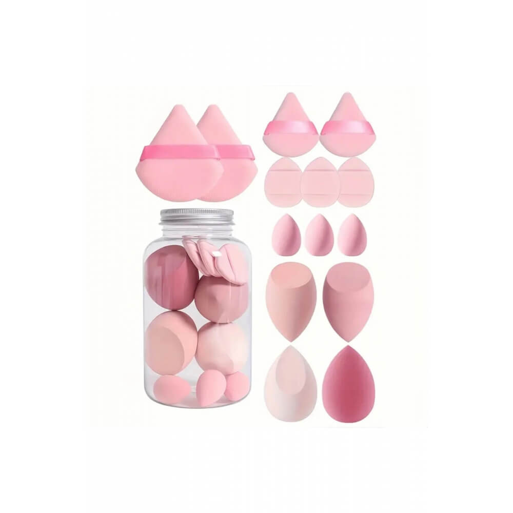 Piev Özel Kavanoz 16 Parça Makyaj Sünger Seti Pembe