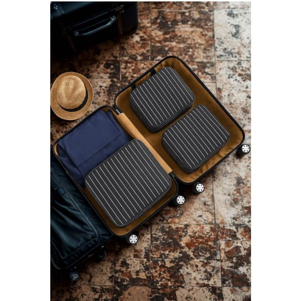 Piev Pratik 6 lı Bavul İçi Seyahat Çanta Düzenleyici Antrasit Çizgili
