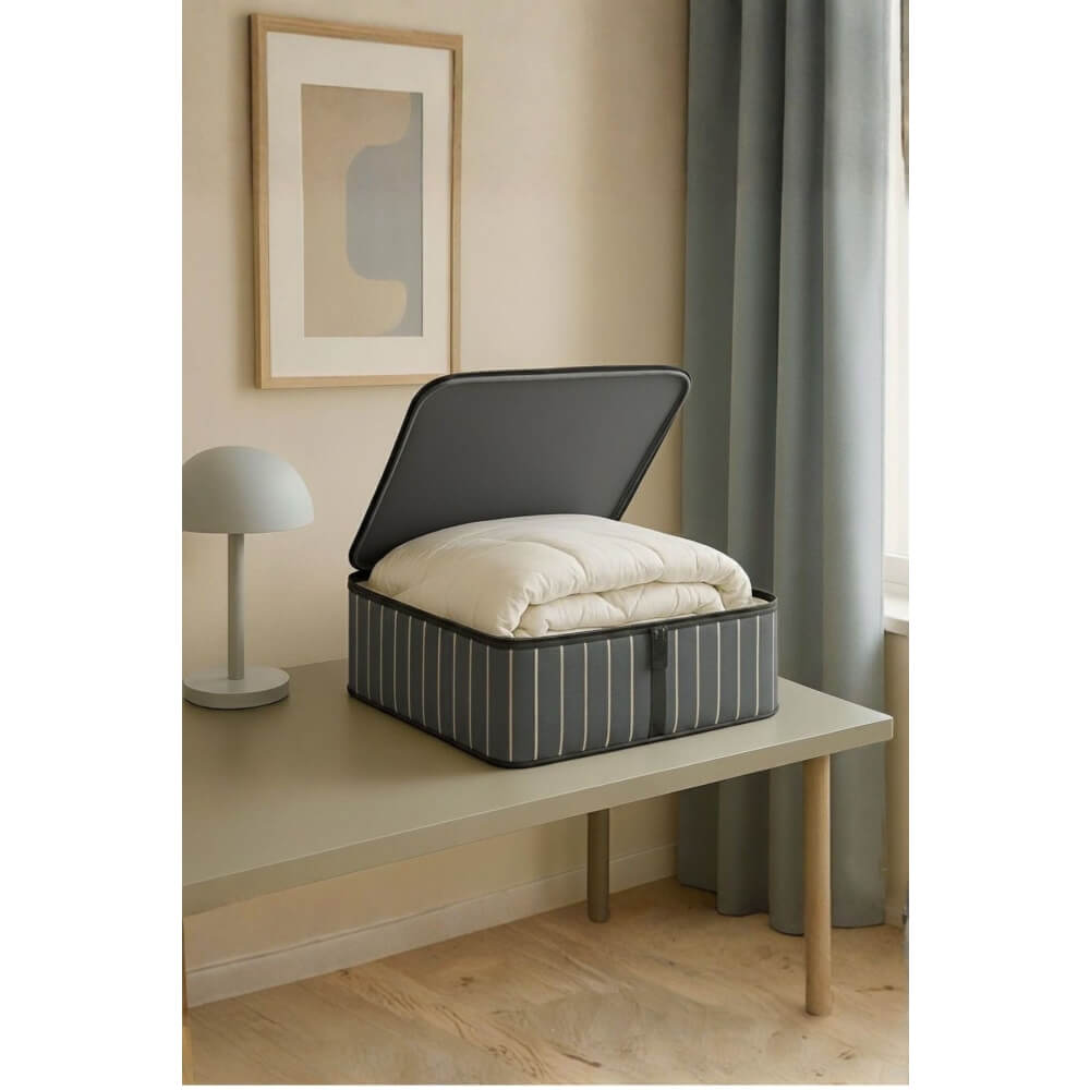 Piev Pratik Çok Amaçlı Mega Dev Yorgan Düzenleyici Hurç Antrasit Çizgili XXL