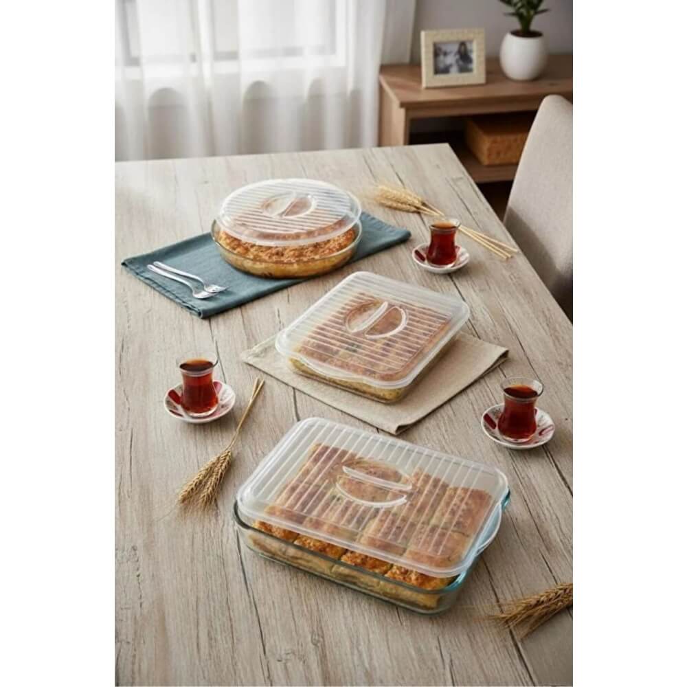 Piev Pratik Kare Dikdörtgen ve Yuvarlak Borcam Kapağı Üçlü Set Plastik