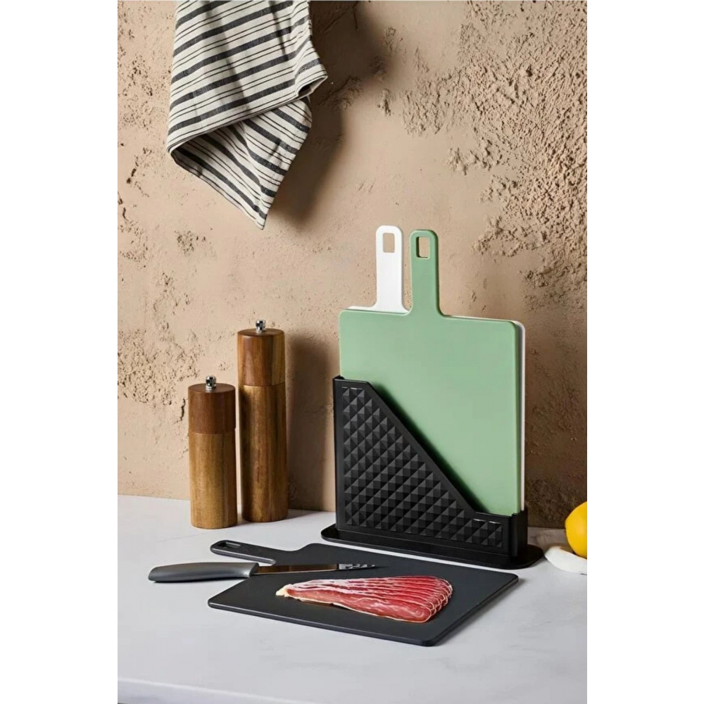 Piev Standlı Saplı Kesme Doğrama Tahtası Seti 3 lü